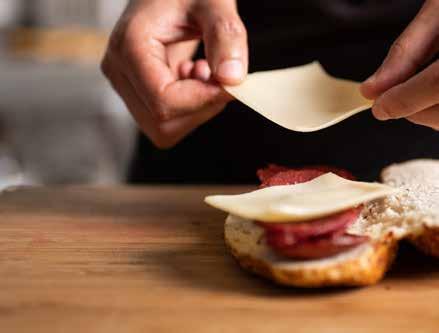 Le fromage en tranches est un choix très apprécié pour les sandwichs, les burgers et les snacks. Nous proposons une variété de formats, d’épaisseurs et de poids pour garantir la praticité. Nos fromages sont exempts d’additifs artificiels, ce qui leur confère un goût délicieux et une qualité constante tout au long de l’année. Ils fondent de façon exemplaire, avec une texture crémeuse et une excellente couverture, ce qui les rend idéaux pour parfaire les burgers.