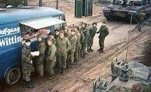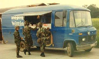 Modern soldiers might wonder what we are all on about, however, I am sure certain Range Complexes in the UK still see an enterprising burger van turn up and you then see the resulting large black bin bag of quickly disposed of, half frozen pack lunches! However, never mind how good those burger vans are, they will never compare with the legendary Wolfgang! His Blue Schnellie Van (Schnellie, British Army slang from the German word for quick food shop – Schnell Imbiss) would roam the large Soltau Training area, in North east (West) Germany and It did not matter how good your camouflage was, he would find you and then any semblance of tactics would go out the window as soldiers rushed to him for Chips mit mayo, Bratwurst mit senf and a yellow handbag of beer. Rumour had it that he had fitted in his blue van a Clansman 353 radio, a set of BATCO and sets of orders!