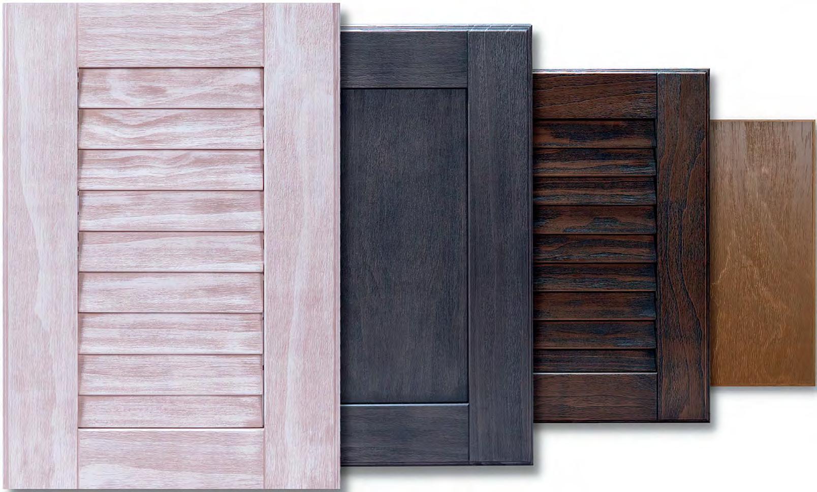 DoorspaintedinWhitewillcome standardwitha whitedoorback,allotherpaintcolors, stainand glazeorweathered finishescomestandardwith basecolorback, regardlessofcabinetinterior color.