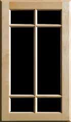 Glass doors with mullions create an attractive showcase for your favorite plateware and glassware. Our unique mullion patterns create a distinctive focal point in your kitchen whether you select two doors or an entire row of cabinets with mullions.