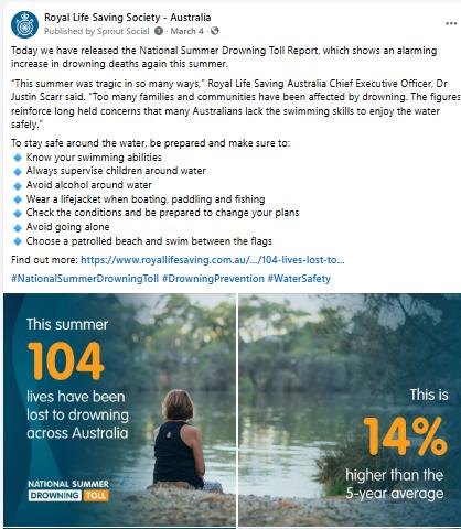 We continue to focus on facilitating local water safety coalitions to promote safer environments for rivers, lakes, and creeks through national funding and local engagement. Supporting local approaches, especially in inland communities, is an approach initially developed through Respect the River program. Now local water safety coalitions are a key part of the AWSS 2030, we expect to see many more emerge.