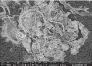 By Shiva Pesaran, Central Laboratory, Shiraz University. Flower-like structure of manganese and protein. TESCAN SEM VEGA3. Magnification: 10KX.