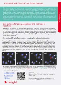 Telight has introduced a new application note showcasing how its Q-Phase microscope, combined with SophiQ software, enables precise, label-free monitoring of cell death. This technology distinguishes between apoptotic and necrotic processes by tracking realtime changes in cell mass, area, and density. Apoptosis is characterised by cell shrinkage and membrane blebbing, while necrosis involves cell