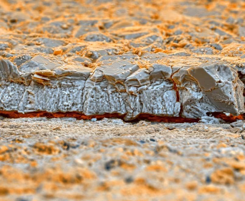The image shows the transverse section of a small fragment of a turtle eggshell pick up from a nest from the Brazilian Cretaceous dating to around eighty million years ago. Horizontal Field Width 249 µm. The sample was tilted at 45 degrees to provide a 3D appearance. SEM QUANTA 450 FEI COMPANY.