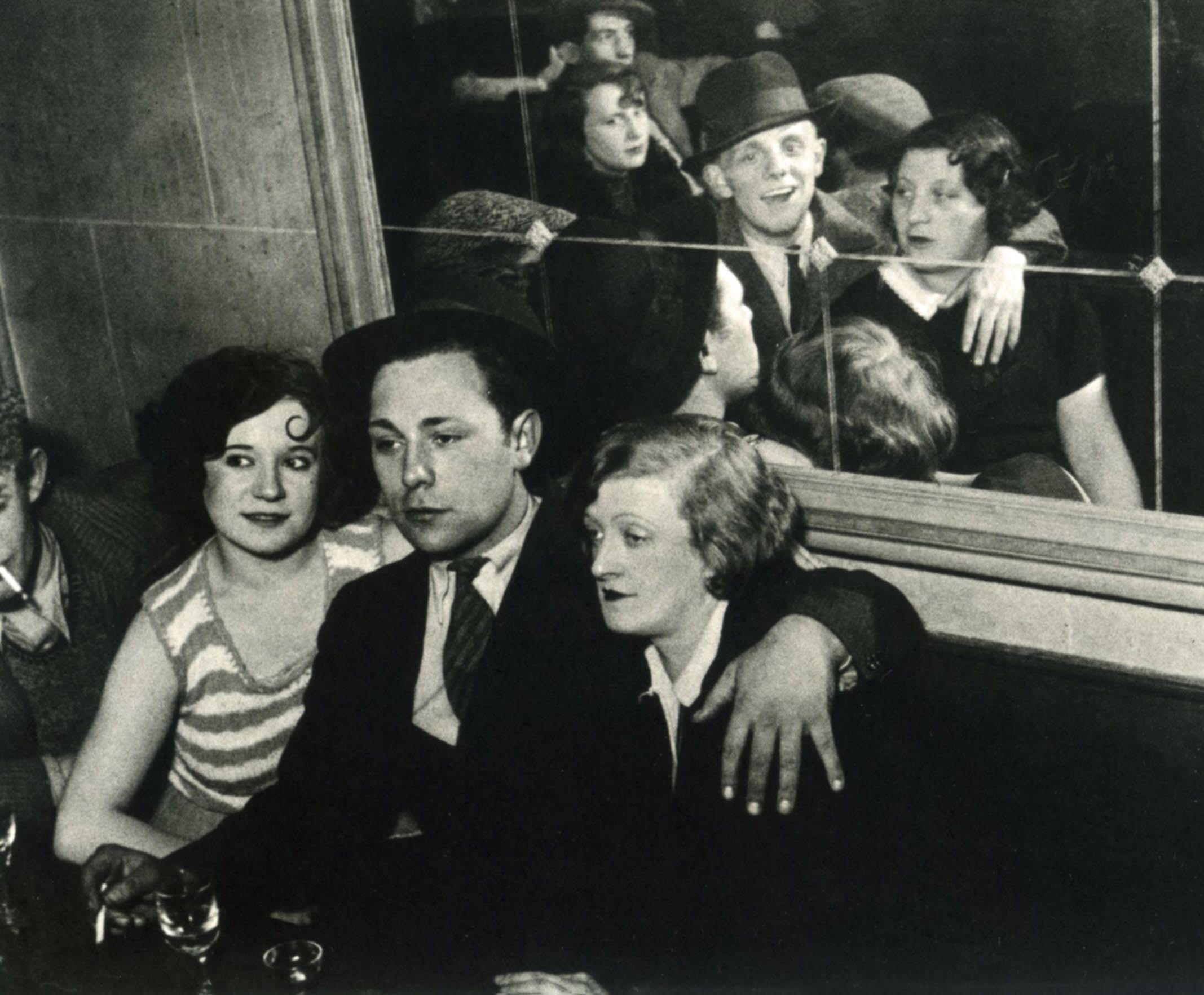 Fig.8 left: Au Bal-Musette, Paris, Brassai, 1932. In this dance hall Brassai found prostitutes, pimps and delinquents in mixed moods of ennui and merrymaking. Part of the group faces the camera whilst others are reflected in the mirror, giving the viewer the sense of looking at two levels of reality, as in a Cubist painting.