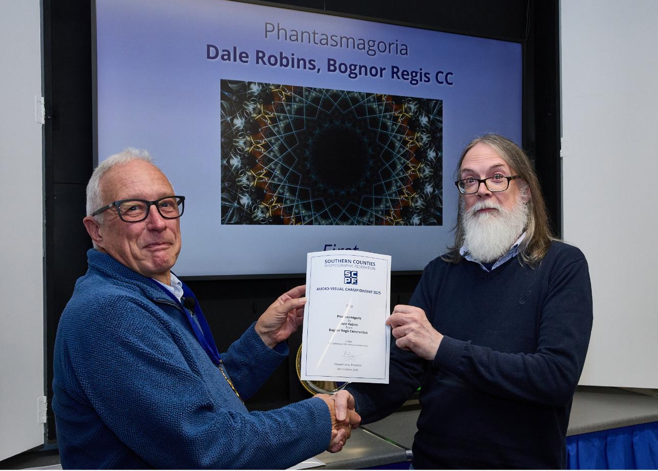 Dale Robins of Bognor Regis Camera Club being presented with the winnerʼs certificate by Stewart Lacey. Photo credit: Suzie Kirby
