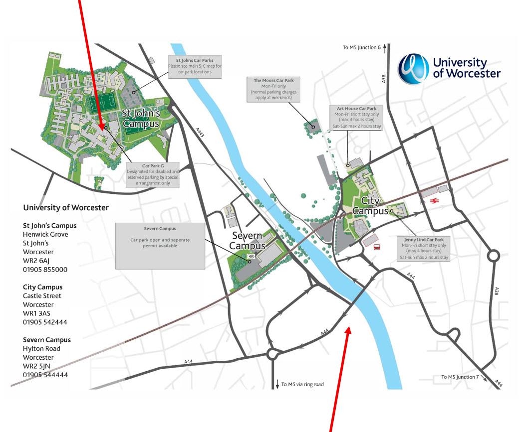 The University is close to the City Centre where there is a range of accommodation and places to eat. There are direct trains to Worcester and close access to the M5 Motorway.