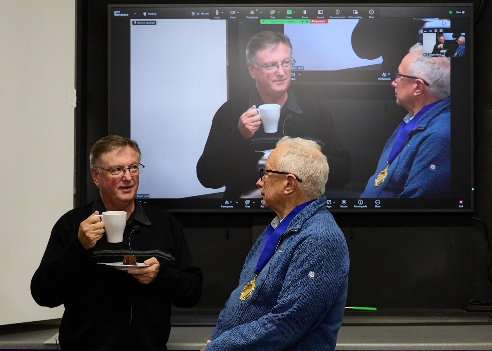 The SCPF competition was live-streamed over Zoom, so hereʼs a picture of me and Stewart Lacey, (SCPF President) in triplicate!