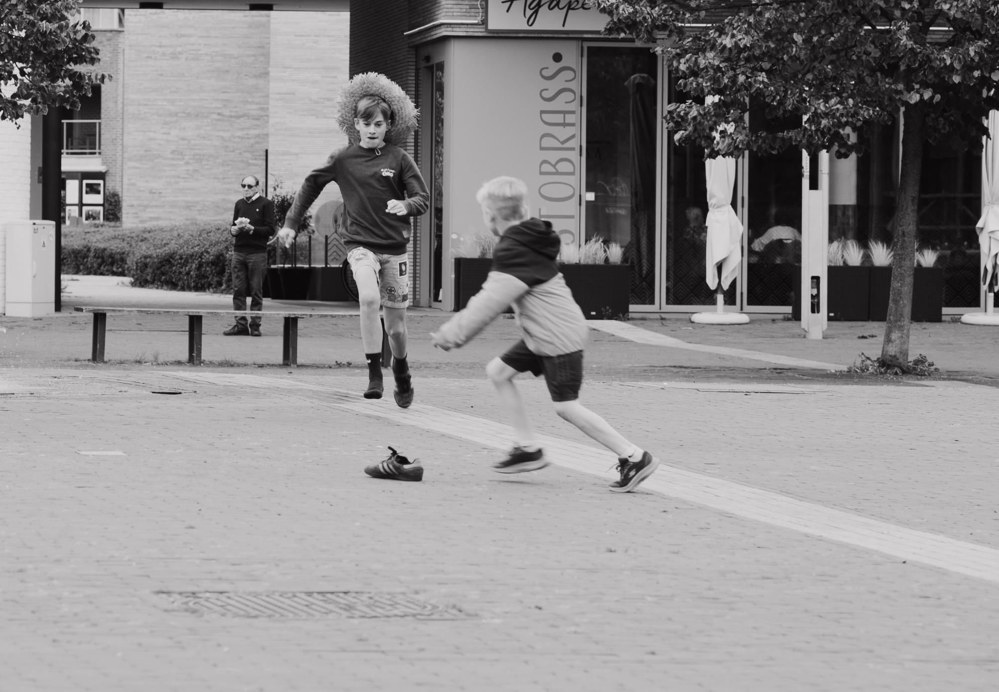 advance, my assignment became the opposite:quick photography. Seeing something and capturing it immediately. And all of this on a Sunday in a nearly deserted Pelt. Thanks to thescouting children, there was thankfully plenty to capture. Because portrait photography—in this case, street portraits—is my preference.