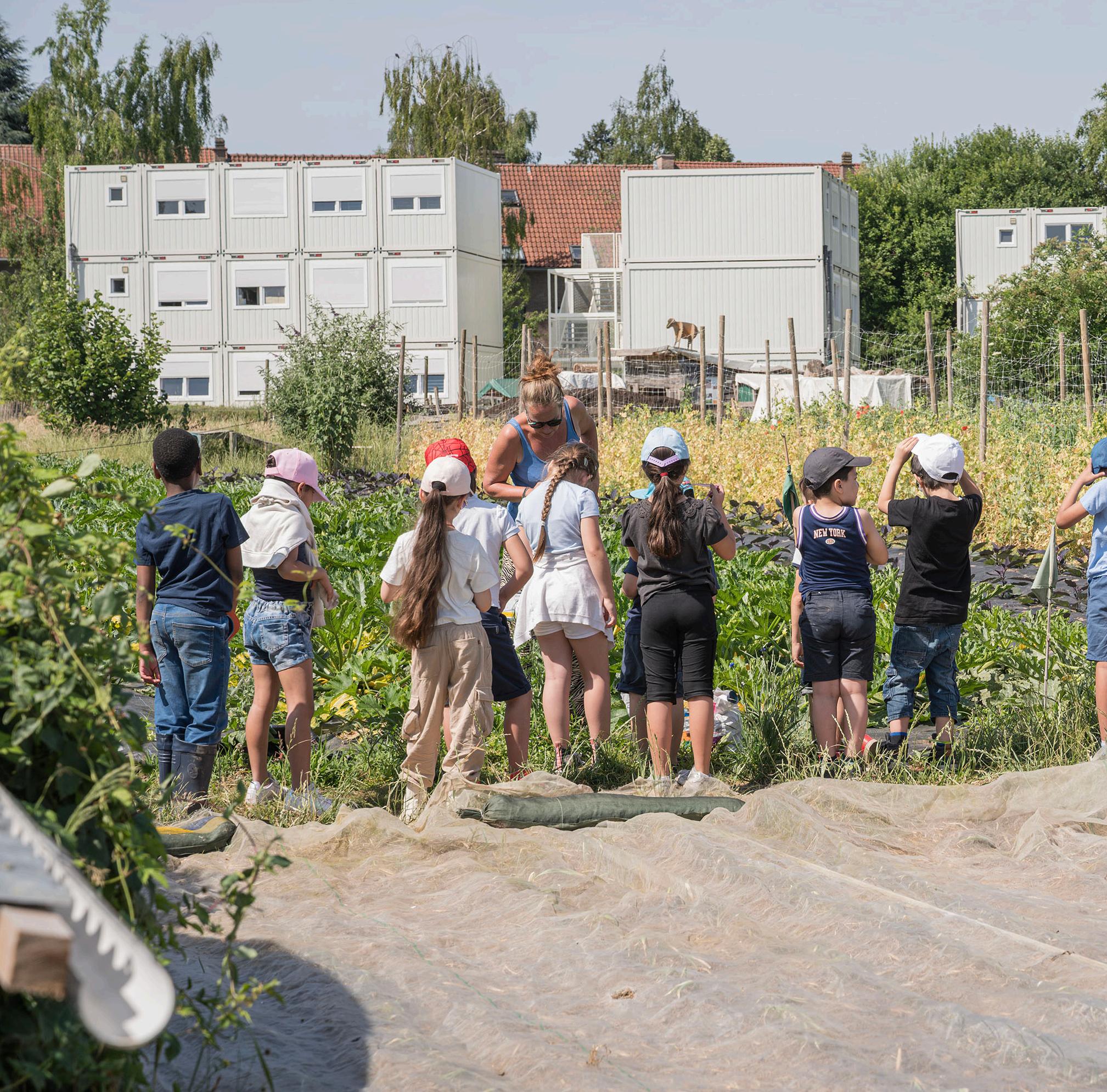 In 2012 a group of committed people took over a plot of land in the suburbs of Brussels that had once been a wheat field. Since then, La Ferme du Chant des Cailles has grown into a farm of many parts. It is market garden growing vegetables, with allotments and a field where sheep graze in the summer. It is a covered market selling products made from sheep's milk, and a social area where events are held, people meet and children play. It gives people the chance to learn about and participate in planting, growing and harvesting food. It is a place where people come together to relax. It brings together people from very different backgrounds and life experiences.