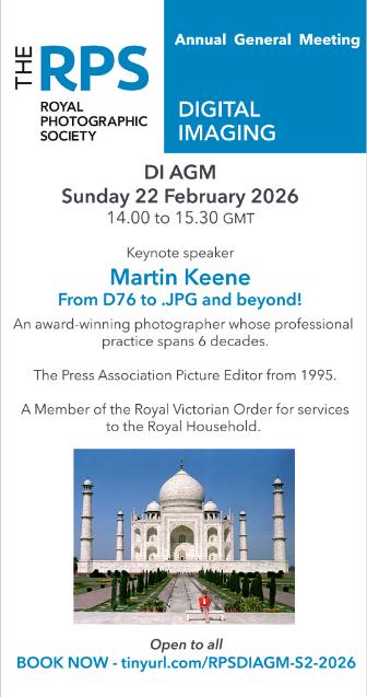 Given we have 1700+ members, and only 20 of us are on the committee, may I invite the other 1680 of you to consider if you could offer us a few hours each month to volunteer for a bit of work. We need a new DI Webinar Administrator. The current volunteer reckons it is only about 2 hours per month, plus attends the monthly Saturday webinars. You would liaise with the speaker via email, meet them online when we do the short pre-meeting to check out the technical aspect, prepare the promotional text and follow up email, working from pre-prepared templates. If you want more information then do email digchair@rps.org