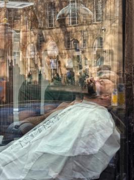 Similar to the previous image but this is a straight shot taken through the window of a barbers' shop with a smartphone.