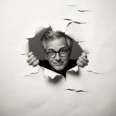 This image started life as a camera club portrait evening. I got AI to repose and have the model looking through a torn paper backdrop. To retain a likeness, it's best to include ‘DO NOT ALTER FACIAL FEATURES’in the prompt.