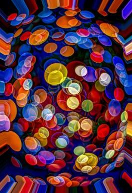 Abstract imaging has been a genre to which I am attracted. There are many interesting images that can be created by deliberately recording out of focus scenes. This is something that is not obvious to the casual observer. Our vision is always automatically attempting to bring into sharp focus whatever we see. Discussing out of focus images immediately brings us to the Japanese term bokeh which literally means "blur" or "haze". Bokeh refers to the aesthetic quality of the out-offocus image. Today we are a little spoilt with the choice of lenses specifically designed to produce either "glowing," "soap-bubble," or "swirly" bokeh. This started a few years back with the Lomo Petzval lens which I have used to create unusual bokeh in some of my completely out of focus images. These speciality lenses are specifically designed with strong field curvature and uncorrected spherical aberration just like 19th-century Petzval designs that produce a distinct, swirling bokeh effect, isolating subjects with a dramatic, vintage character.