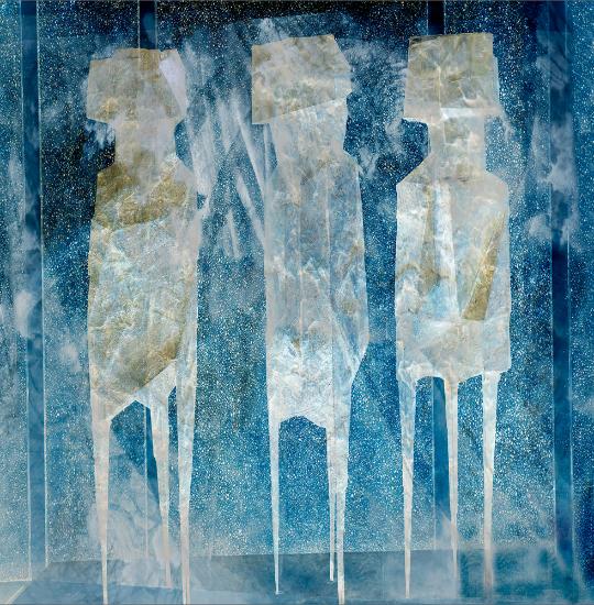 This image is an interpretation of the band, Blanco White, playing the song ‘Colder Heaven’. I love to take images of old artefacts in museums and captured these 3 primitive beings with my Canon RP. In Lightroom and Photoshop I added texture and replicated the layers several times to get a cold, static, metallic and ‘hard listen’ feel to the Band’s performance. The lyrics of this song have a sad and lonely theme.