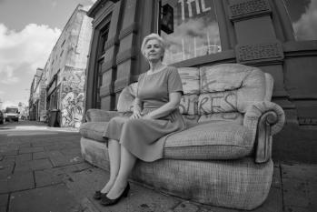 The original was taken with a Fuji camera. It's a rather cosmopolitan area of Bristol. With AI I had a middle aged lady sit on the sofa. Looking at it closely I can see that it's given her two right feet. Always pays to look carefully at AI images, especially hands and feet.