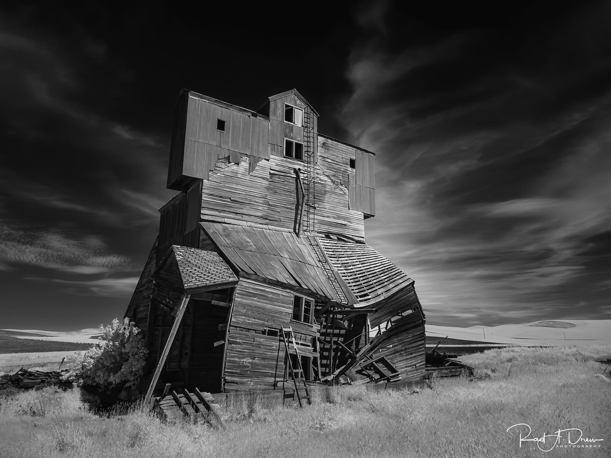 Collapsing Grain Elevator, The Palouse in eastern Washington, USA, iPhone 15 Pro Max, native camera with Night Mode, handheld
