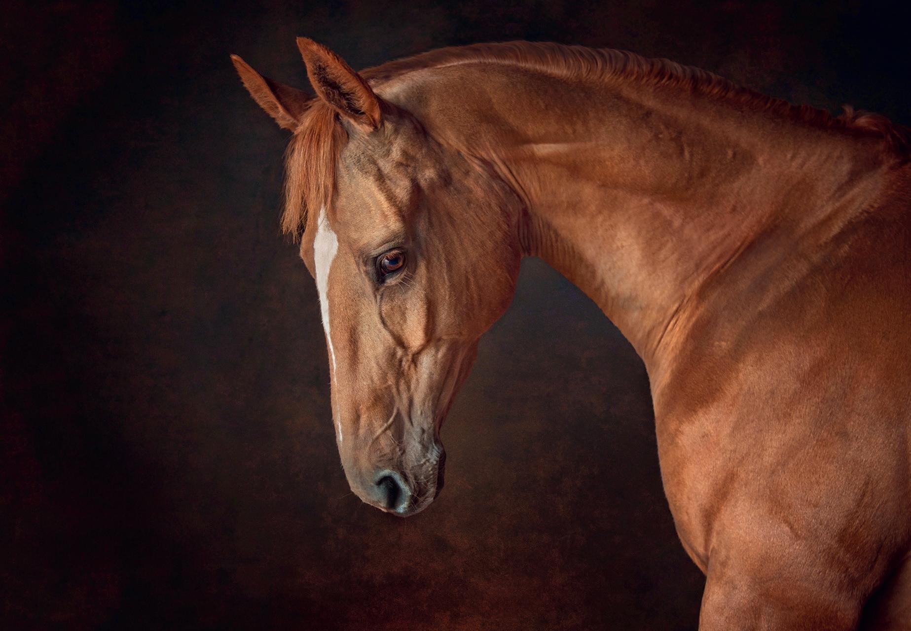 I love visiting clients and their horses on location, and shooting in natural light is my favourite. For portraiture work, the camera is set to manual, and I adjust the ISO to the light of the day - if it’s very bright and sunny, it’s down to 100 or 200 and a small depth of field aperture f/3.5. I try not to shoot f/2.8 for portrait work as the depth of field created can be so shallow, it often doesn’t capture the whole of the horse’s head in sharpness.