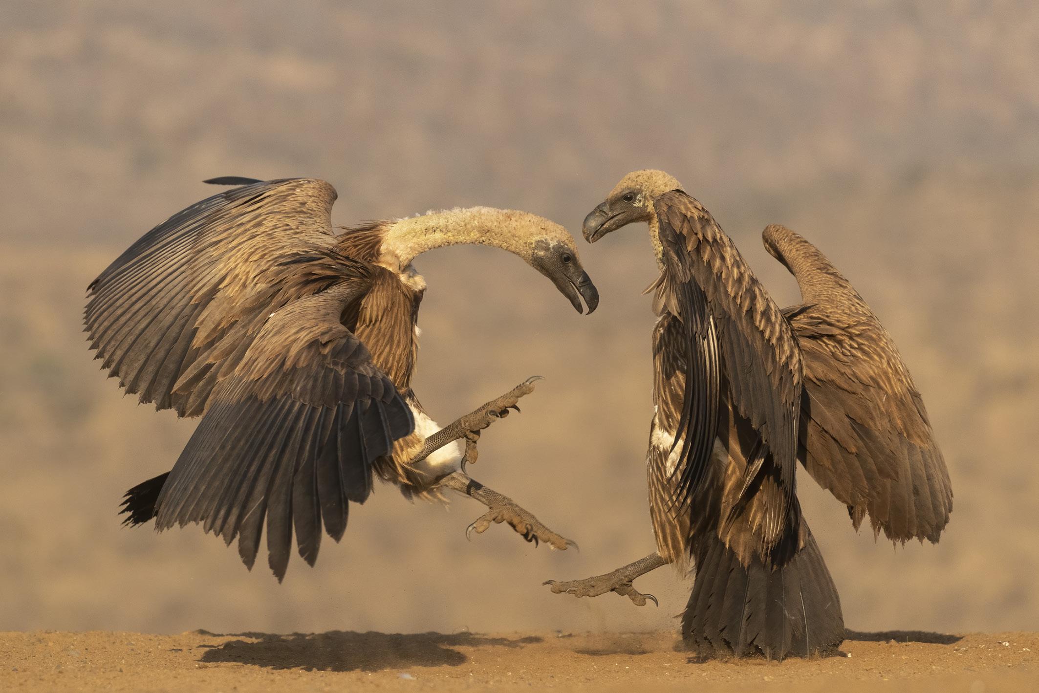 Whitebacked vultures squabbling