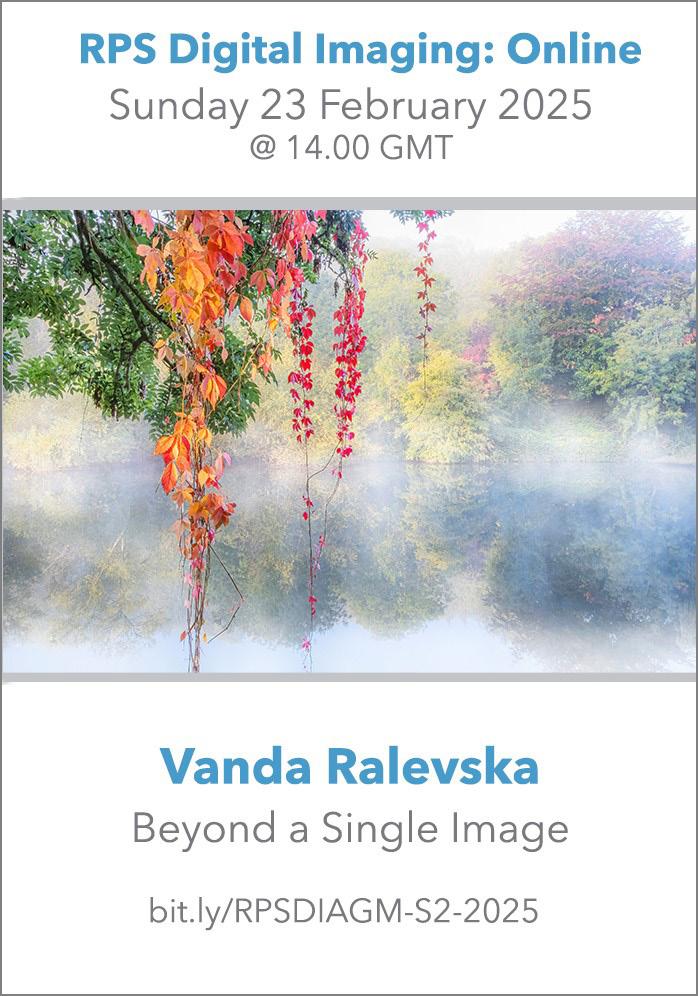 Moving in to 2025 we have already announced two new projects that seem to be extremely popular, with more being planned for the second half of the year. The LRPS Support Group meetings and forum will bed in and I am sure we will be seeing Distinction successes from our participants. The Digital Imaging competition has evolved as a result of the survey feedback, this also guiding us for other changes of direction. You tell us - we respond.