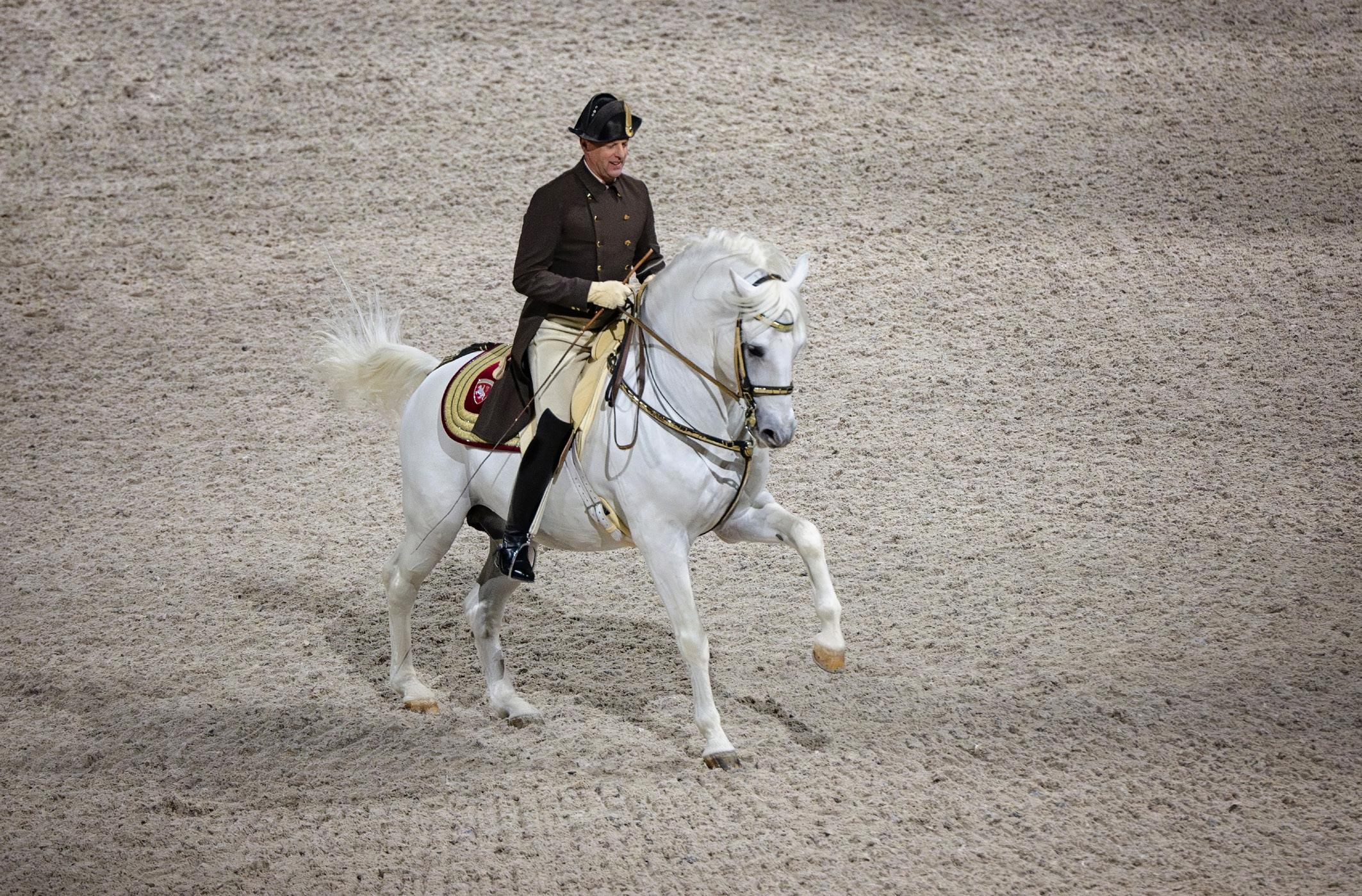 A Lipizzaner from the Spanish Riding School performing in Aberdeen
