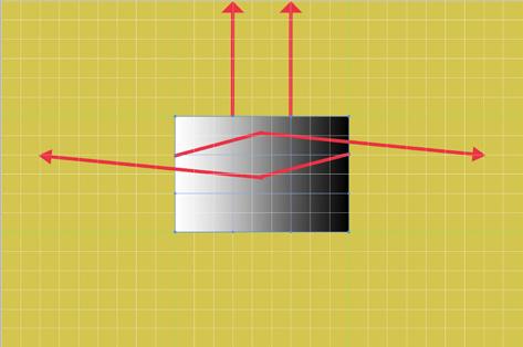 If I want to change the action, I have to re-record it, so it is useful to have a note of exactly how far the control points and control point handles were moved. I added layers containing a grid so that I could note the coordinates where the blue dots had been moved. Figure 3 shows my screenshot of how I moved control point handles to record an action. Figure 4 shows the grey rectangle after applying this warp action. If I want to make a slightly different warp, I record a new version with the control points and handles moved to slightly different positions on the grid.