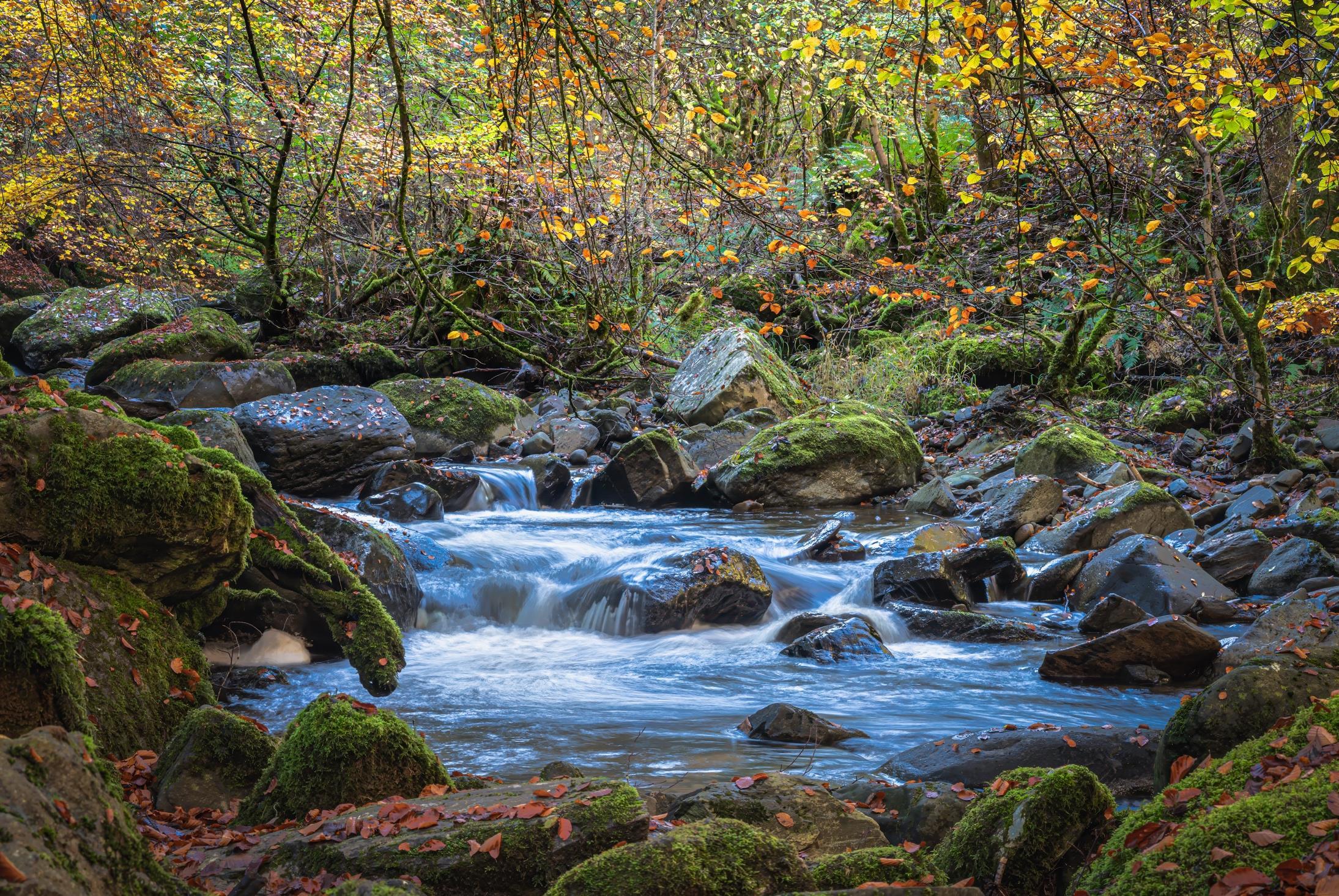 “The braes ascend like lofty wa's, The foamy stream deep-roaring fa's, O'er-hung wi' fragrant spreading shaws, The birks of Aberfeldy.”