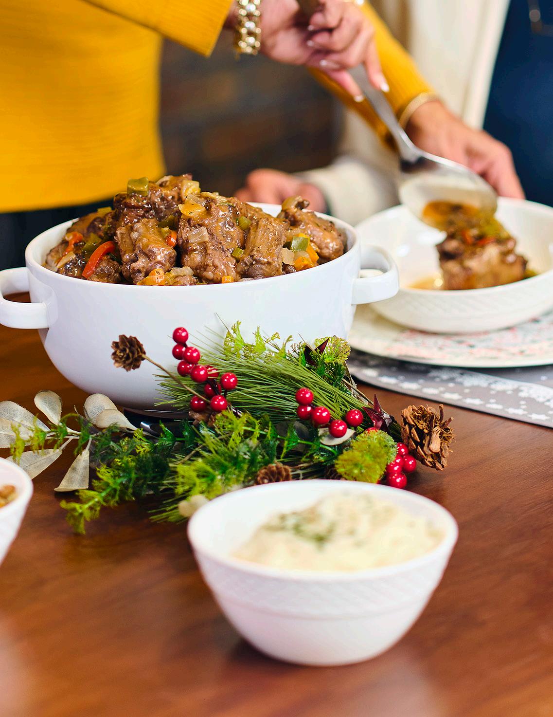 El chef Omar Sandoval trae a las estrellas del Thanksgiving: pavo (pág. 38) y relleno (pág. 36). En una fiesta navideña al estilo de las posadas mexicanas no puede faltar un sabroso pozole verde (pág. 32), así que Dominika Paleta nos comparte su receta. Desde el sur del continente nos llega un riquísimo torta de choclo (pág. 20) del chef José del Castillo, un vitel toné (pág. 26) de Maru Botana y una apetitosa rabada (pág. 40) de Leonardo Abreu.