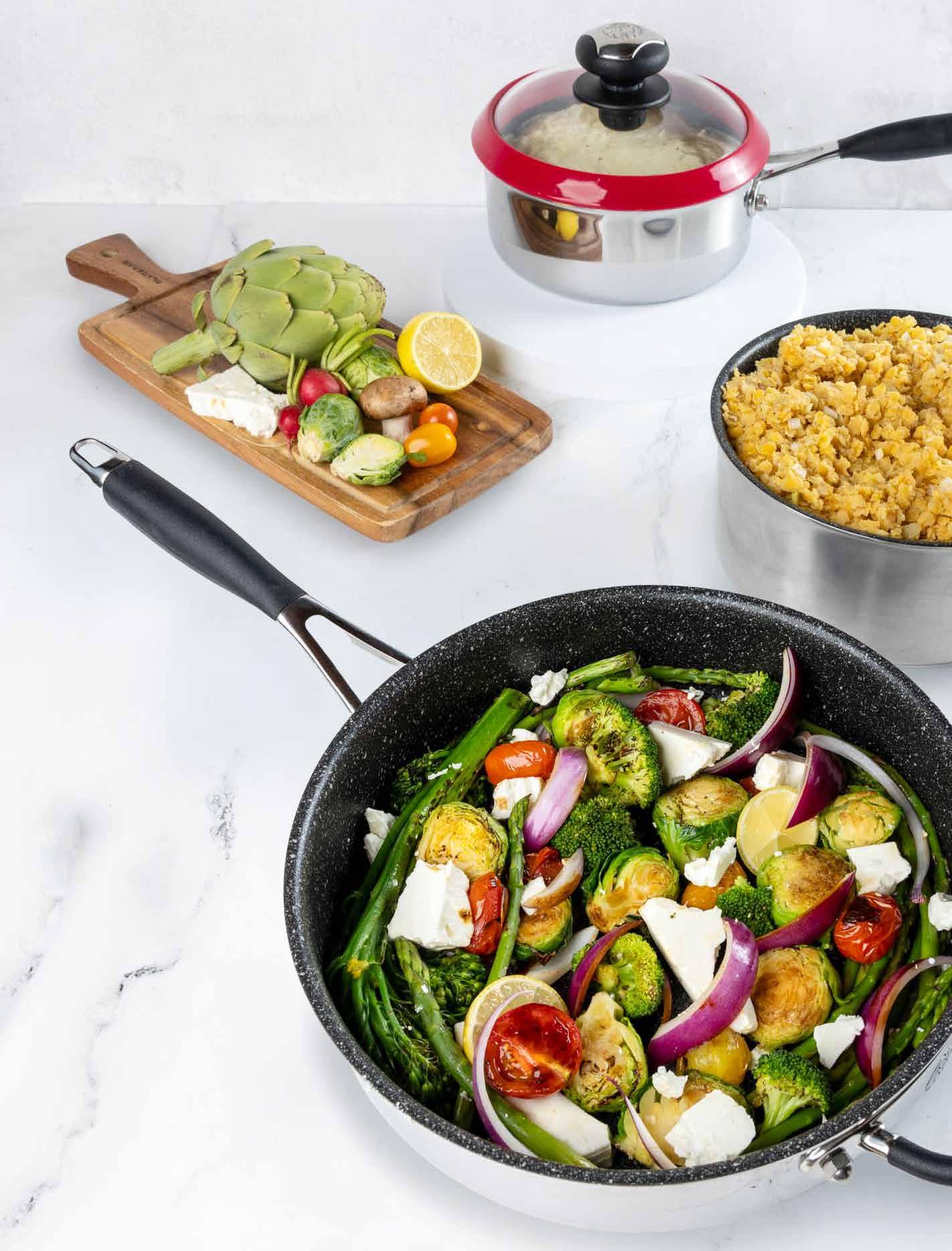 Enamórate del arte de cocinar con muy poca agua, sin aceite ni grasas añadidas, en nuestras ollas y sartenes Royal Prestige INNOVE®.
