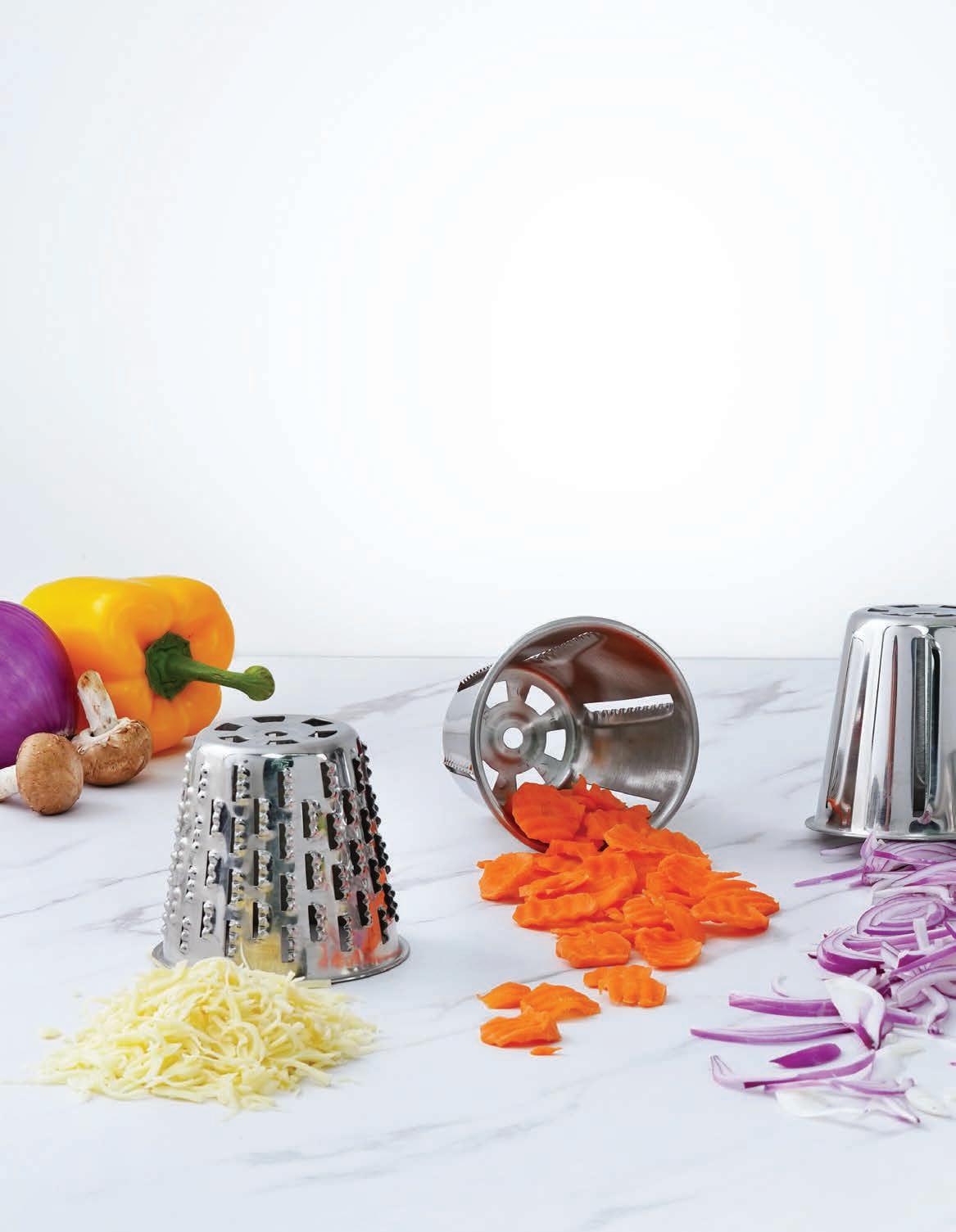 Obtén fácilmente una gran variedad de cortes para tus verduras, frutas, quesos y mucho más.