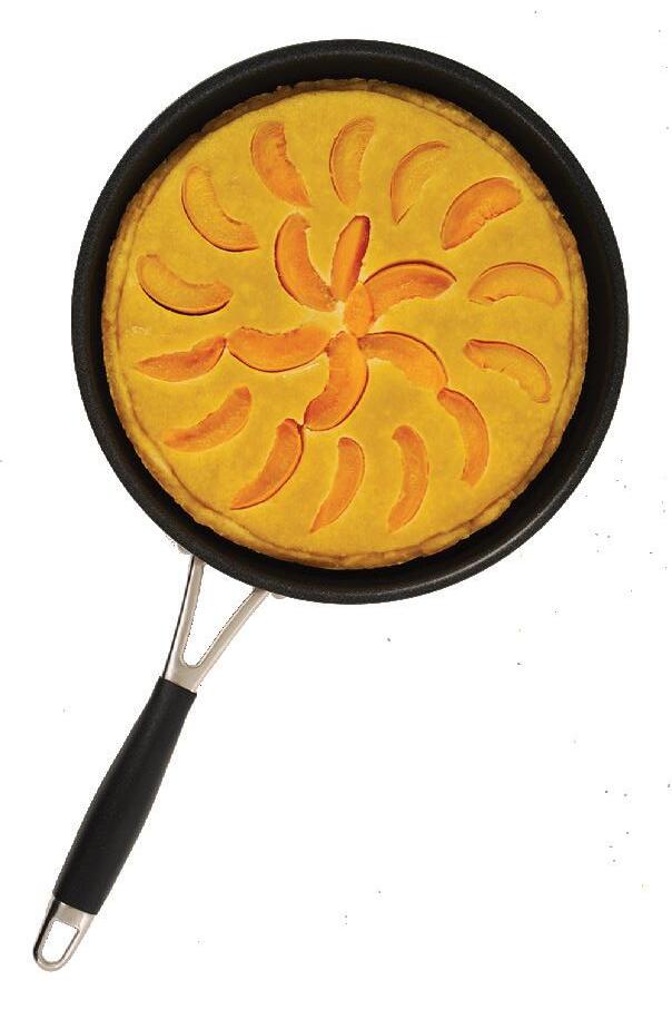 Y ya sabes que con nosotros nunca falta el postre. Prepara una deliciosa tarta de durazno y crema de almendra (pág. 34) sin horno con el Sartén Deluxe Easy Release de 10”.