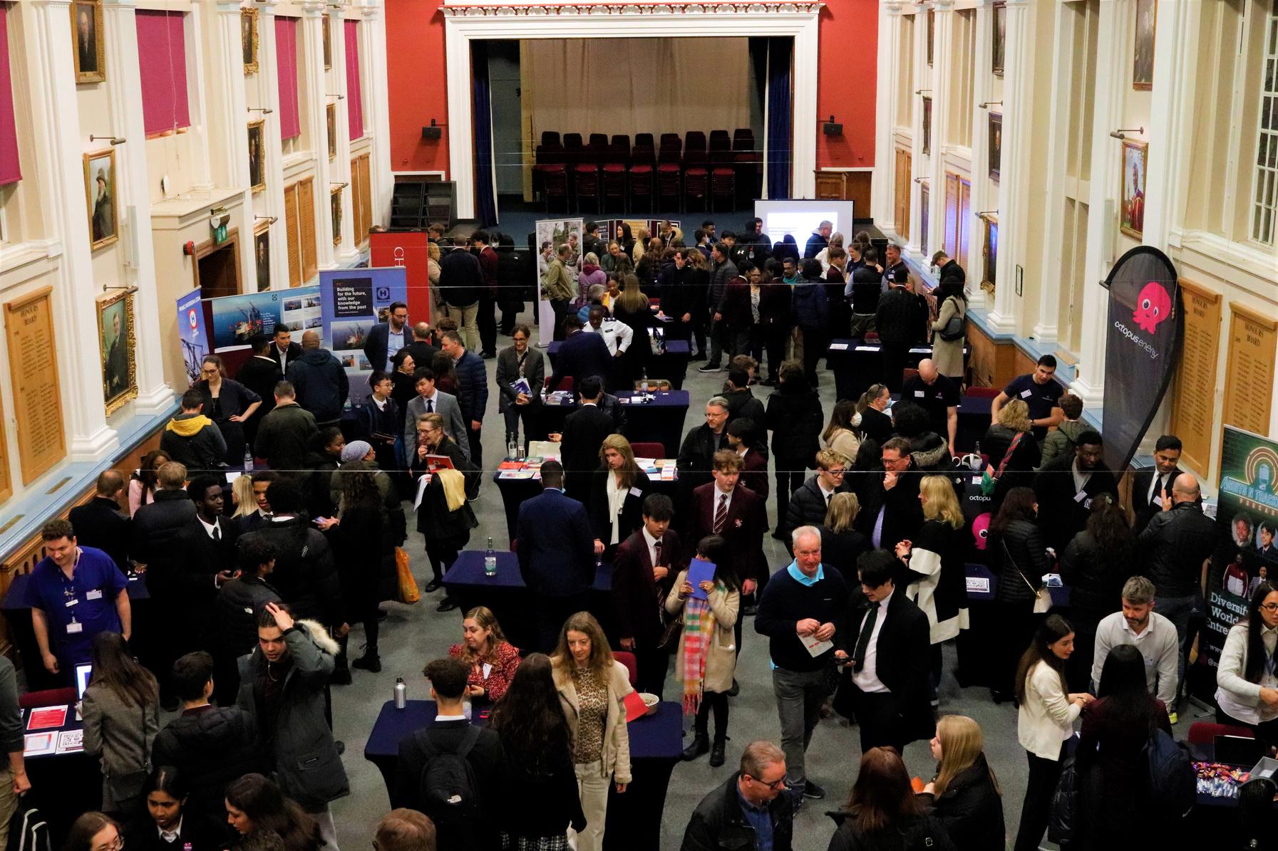 Apprenticeship exhibition in the Library. Higher Education exhibition in Great Hall