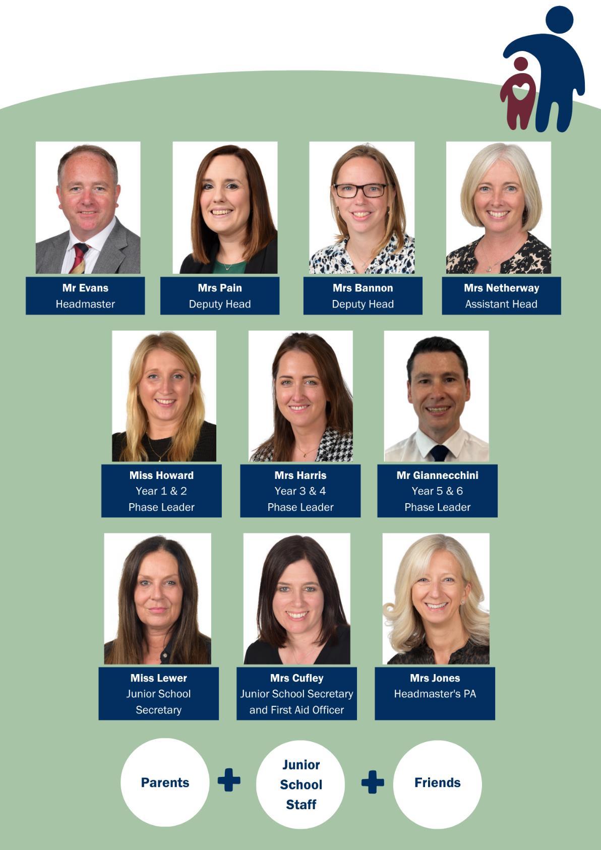 Mrs Alys Netherway oversees the operational elements of the Junior School in her role as Assistant Head Operations. Phase Leaders are responsible for supporting children within their phase in partnership with the Junior Leadership Team (JLT) and class teachers. Subject specialists are responsible for the curriculum and monitoring of progress within their area. The class teacher/s remain the first port of call for all matters concerning your child.