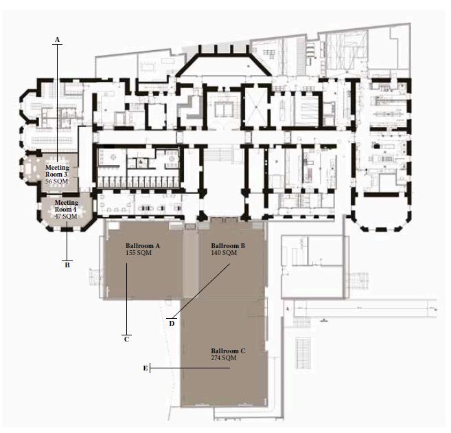 10 event spaces including 5 sub-commission rooms and 2 large modular spaces (1200 sqm)