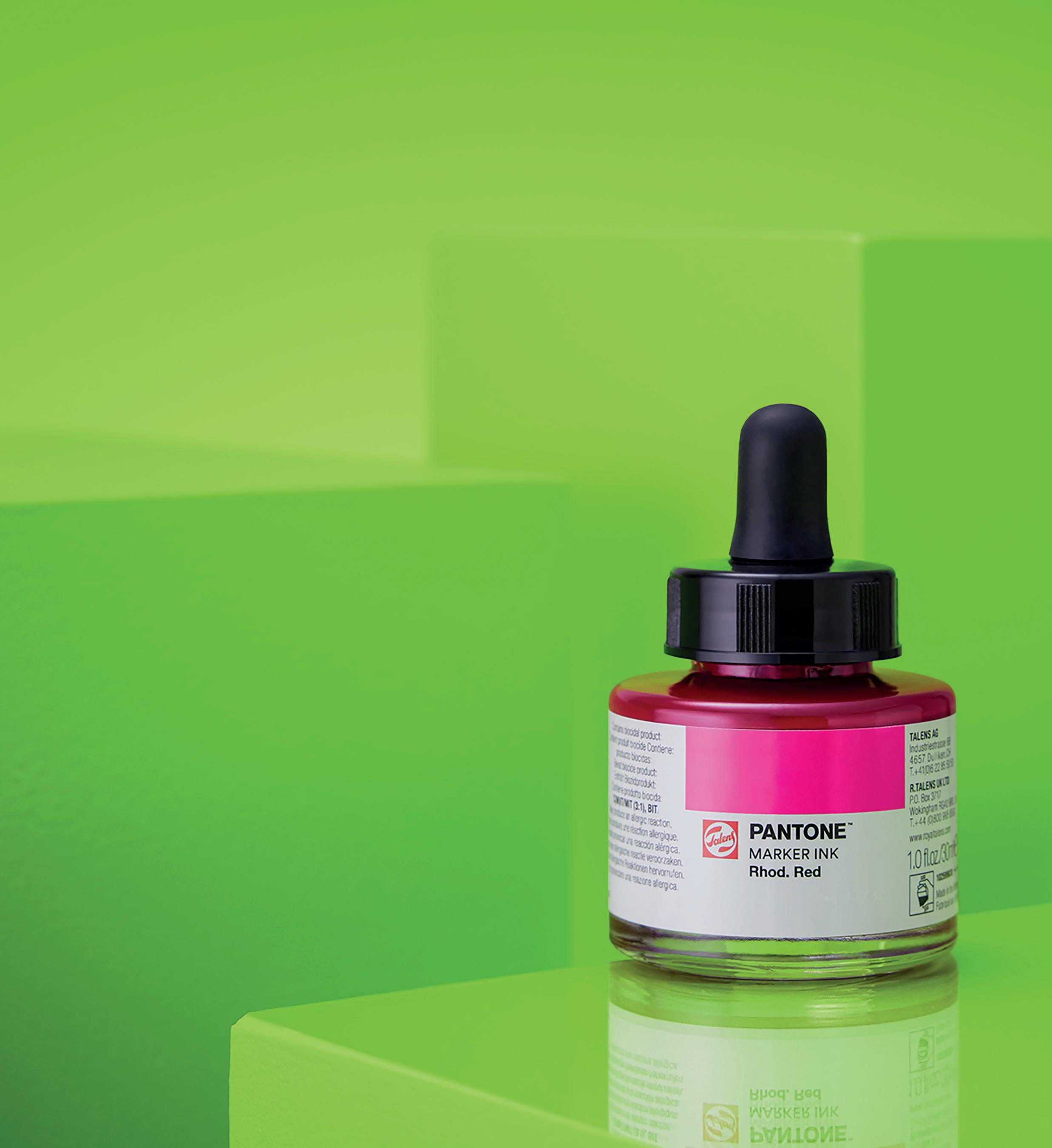 Estas 108 tintas ultra uidas están hechas con tinta pigmentada a base de agua y se basan en el Pantone Matching System™. Minuciosamente formuladas, ajustadas y comprobadas por Talens, y aprobadas por Pantone. ¡Haz realidad tus ideas y descubre las posibilidades! Estas tintas para rotuladores no solo se pueden usar para rellenar los rotuladores Talens Pantone, sino que también son excelentes para usar por separado. Gracias al bote estable con abertura ancha, tendrás la libertad de trabajar directamente con él. Prueba con un pincel, una pluma, un bolígrafo de caligrafía o incluso con un aerógrafo.