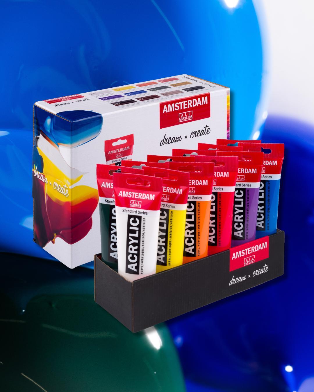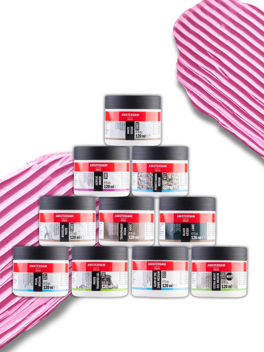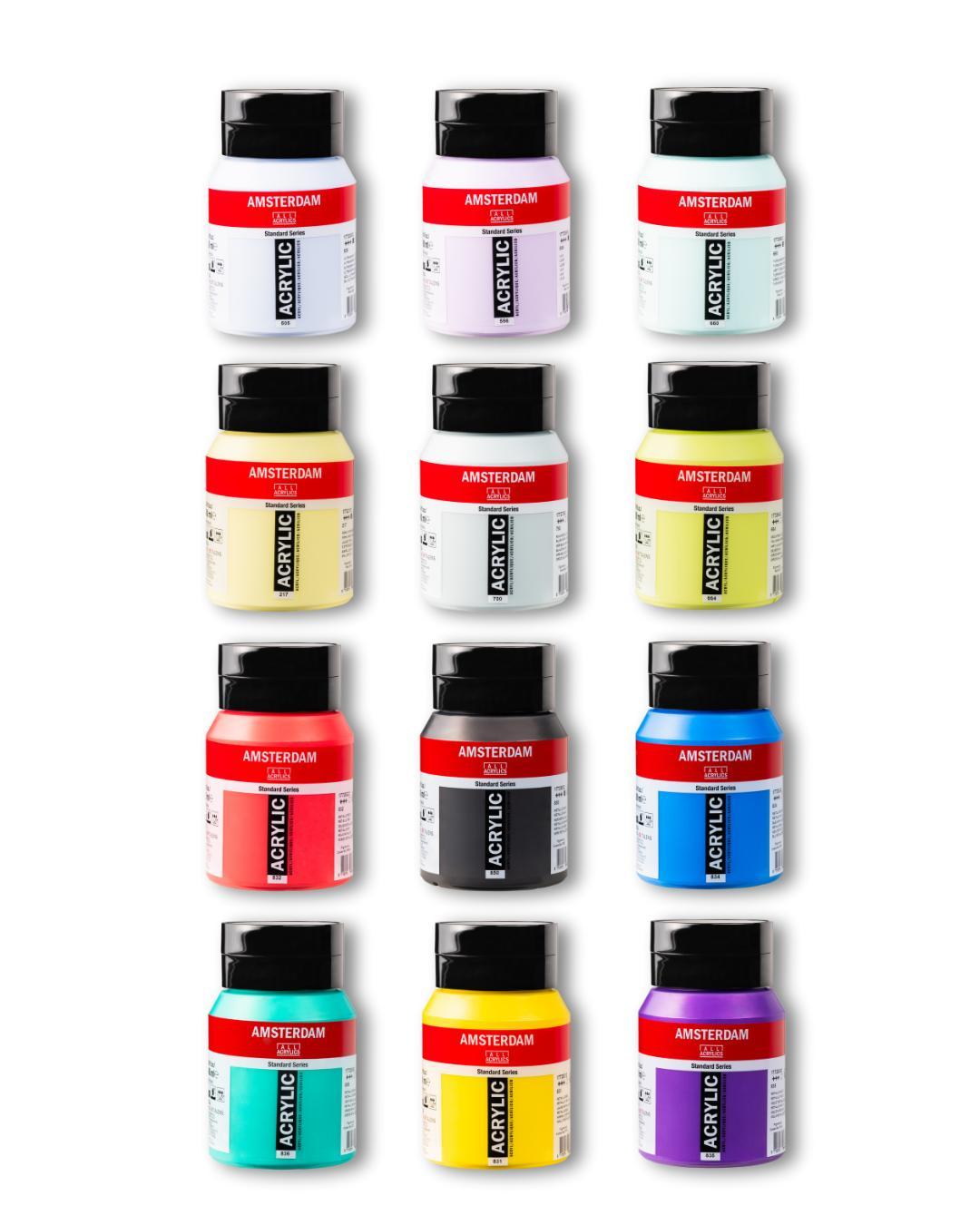 • The Amsterdam Standard Series is expanding with 12 new colors in 500ml pots: 6 pastel shades and 6 metallics.