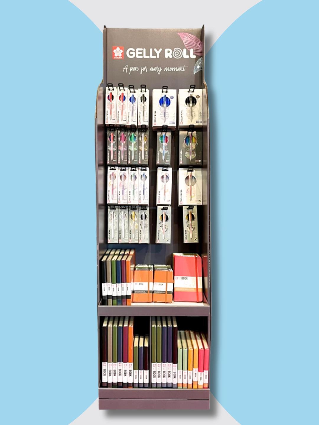 The perfect way to present the beautiful new Gelly Roll retractable and notebooks in store.