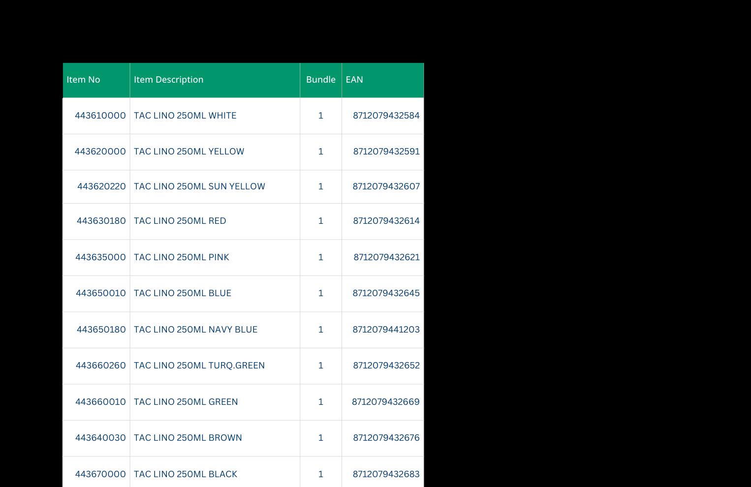 • Lino Colours: 11 colors in 250 ml jars.