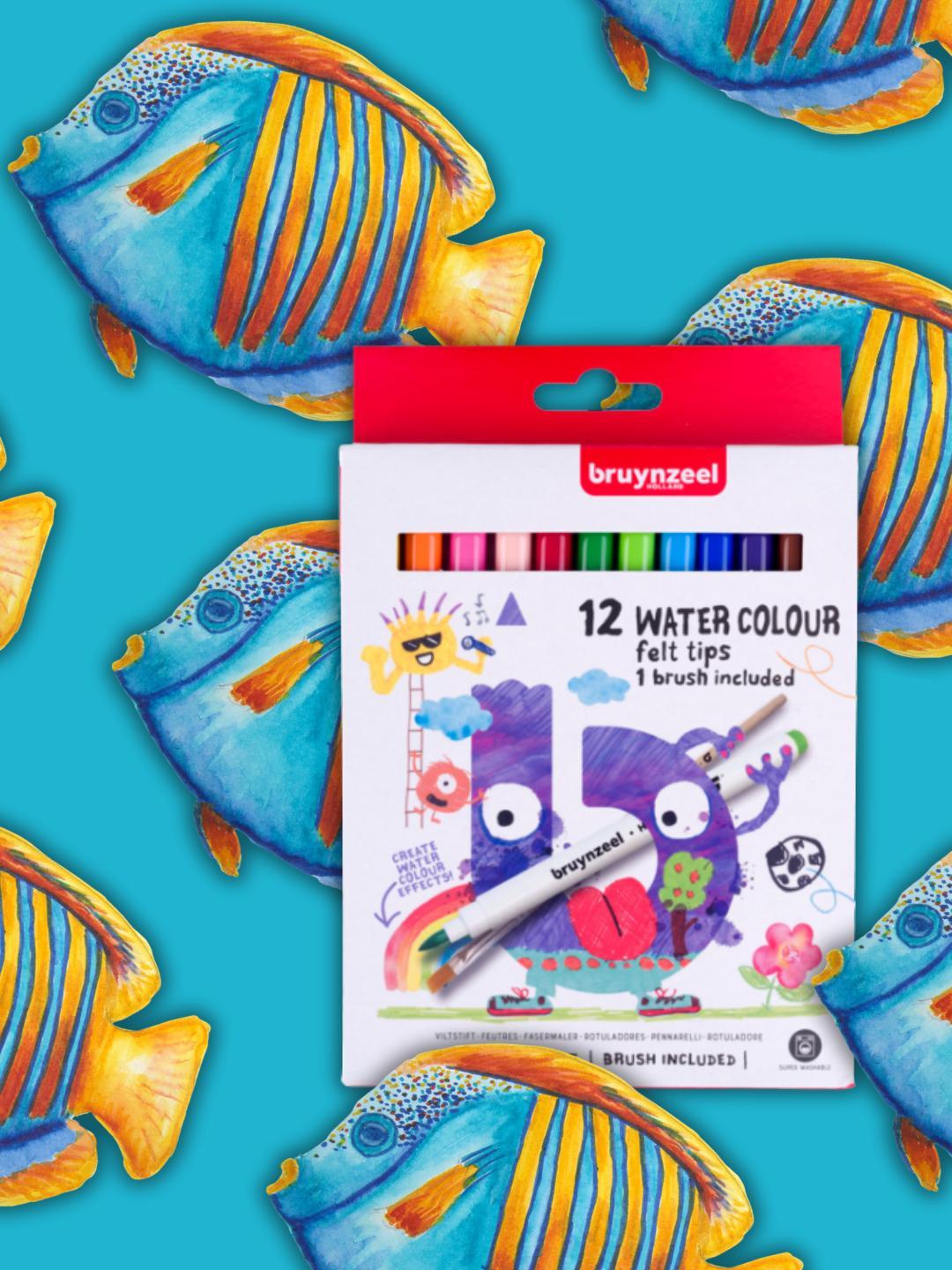 • This set includes 12 vibrant, water-soluble felt tip pens and a brush to create stunning watercolour effects.