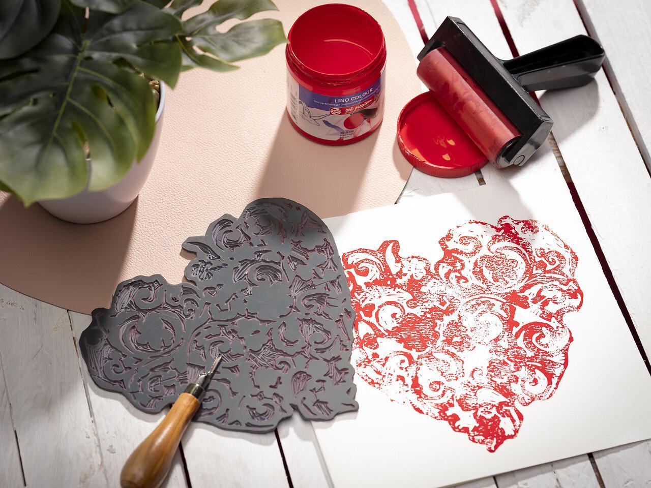 A water-based linoleum paint for lino printing.