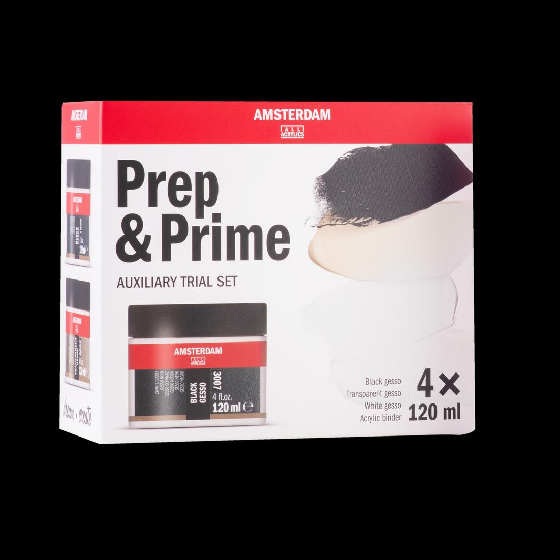 ⚬ Prep & Prime: black gesso, white gesso, transparent gesso and acrylic binder