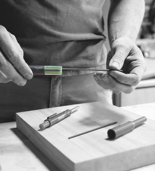 The pencil has deep-hole marking capability of up to 100mm in a 3mm hole and 145mm in a 6mm hole with the unique 120mm retractable and interchangeable leads. The replacement leads contain 4 x 2B graphite leads for clear dark lines as well as 2 x alternative yellow leads for darker surfaces. along with our unique innovation, the clog free marker designed to plough through the dustiest of surfaces without drying up the marker.