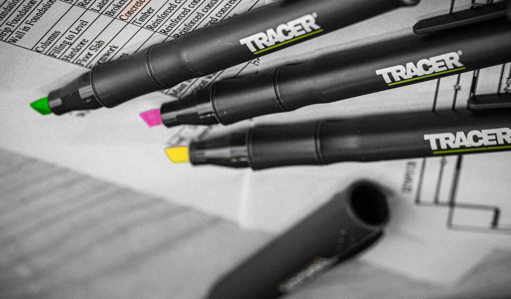 We are pleased to put the spotlight on the latest markers to our ever-growing lineup. The TRACER Fluorescent Highlighter Kit comes packed with three different highlighters designed for the worksite. Each pen is partnered with a trustee TRACER site holster so that they are always within arm’s reach with a safe place on your toolbelt or holster. The markers are fantastic for use on documentation and plans. Highlight what matters with this much requested addition to the TRACER range. The kit includes a pink, green and orange highlighter marker.