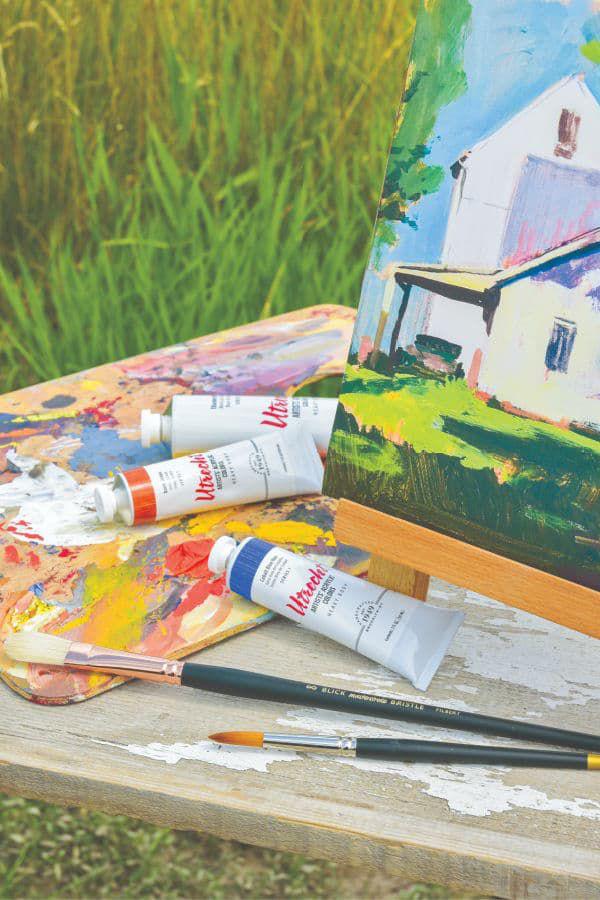To get started painting plein air sketches in acrylic, there are some important strategies that will contribute to your success. Here, I’ve outlined a full list of tips I’ve picked up from more than 30 years of outdoor painting experience. TOOLKIT Paints: Utrecht Artists’ Acrylic Colors: titanium white, unbleached titanium, cadmium yellow light, cadmium orange, cadmium red medium, burnt sienna, brilliant blue, cobalt blue, Hooker’s green, dioxazine purple and Payne’s gray Surface: Blick 3/8-inch thick Premier Artist Panel (12×12) Brushes: Nos. 2, 6, 8 and 10 Blick Masterstroke interlocking bristle filberts and No. 6 Golden Taklon short handle round
