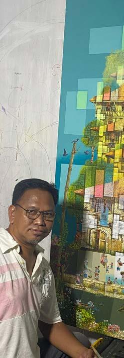 guidance, Jan Lemuel began painting his own version of a landscape inspired by his grandfather’s work. This mentorship helped him gradually refine his unique style. However, their collaborative work came to a halt by Jose’s passing, leaving Jan Lemuel’s painting unfinished, with only 20% of it done. After his grandfather's passing, Jan Lemuel found himself at a crossroads. While grief played a part, it was also a sense of uncertainty about his artistic path that led him to explore other forms of expression. He turned to theatre and singing, discovering more new ways to channel his creativity and emotions. Though his focus shifted to the stage, his passion for painting and the visual arts never really faded.