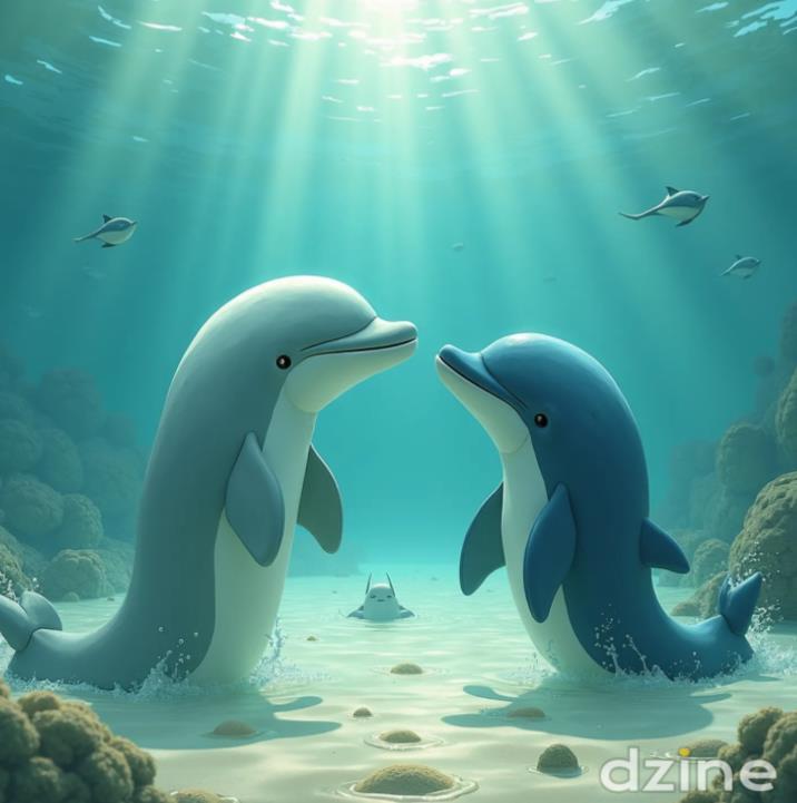 身體呈現流線型,背鰭基部寬大的小白。他們聚集在 一片清澈的水域,陽光透過水面,斑駁地灑在沙底 上。