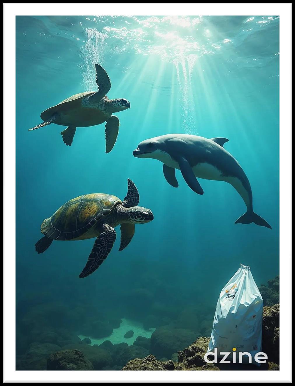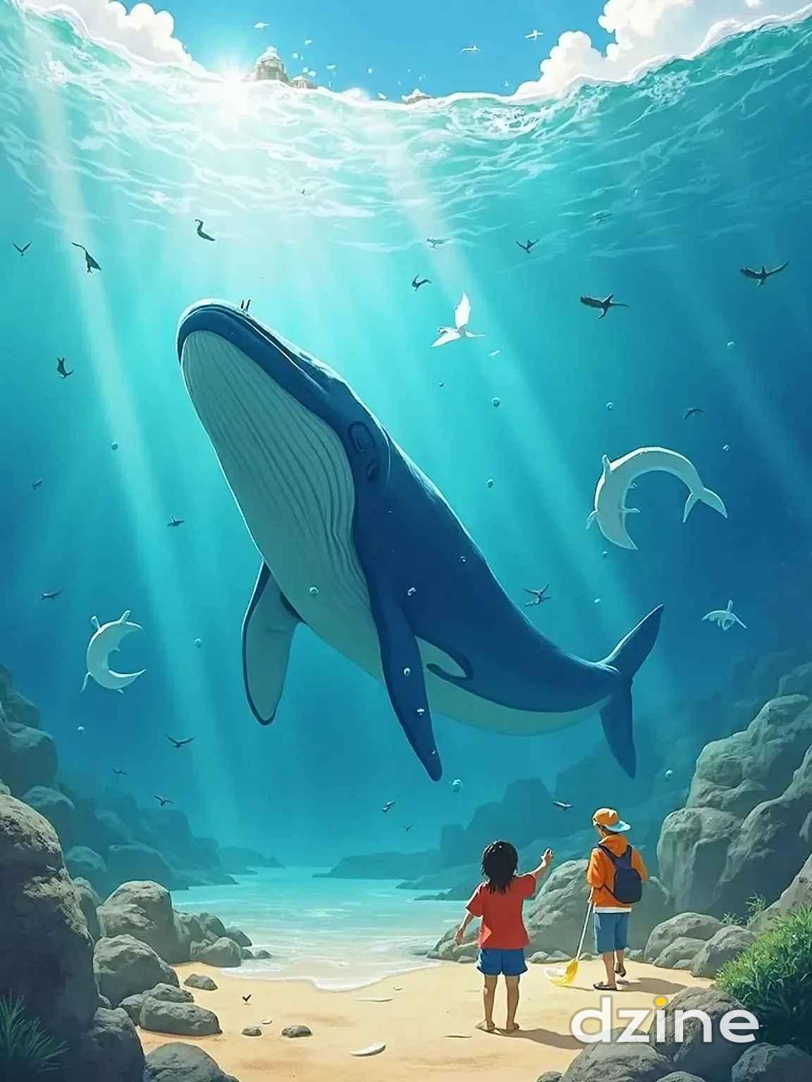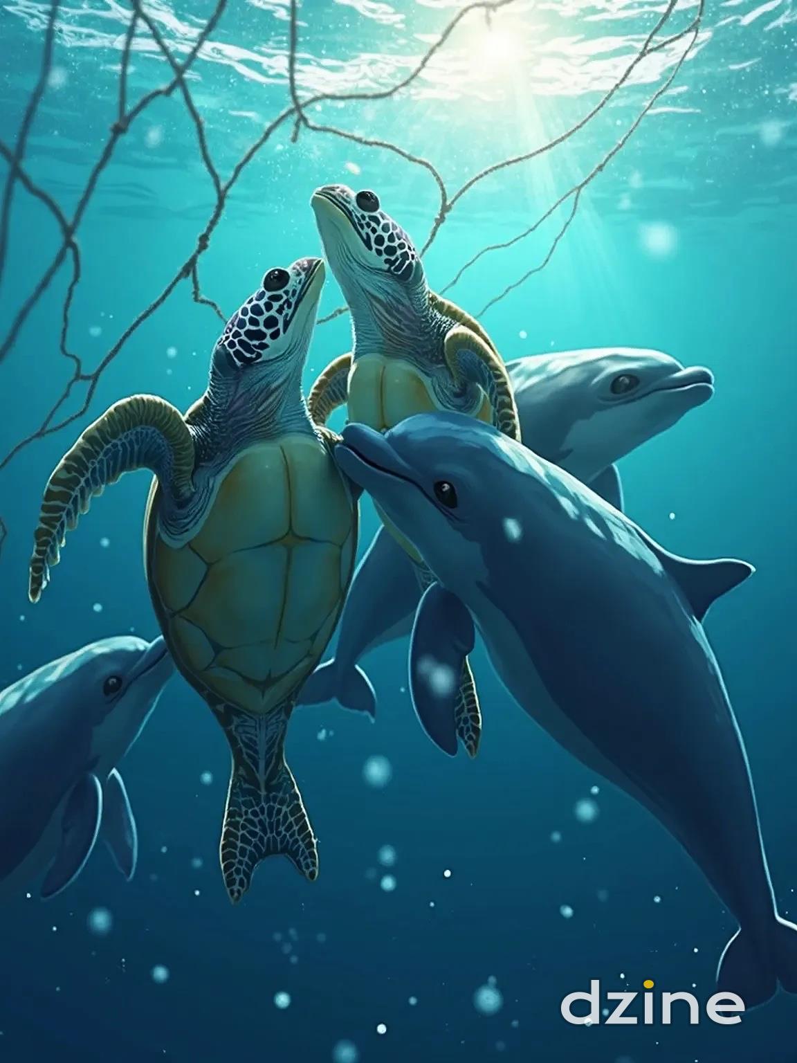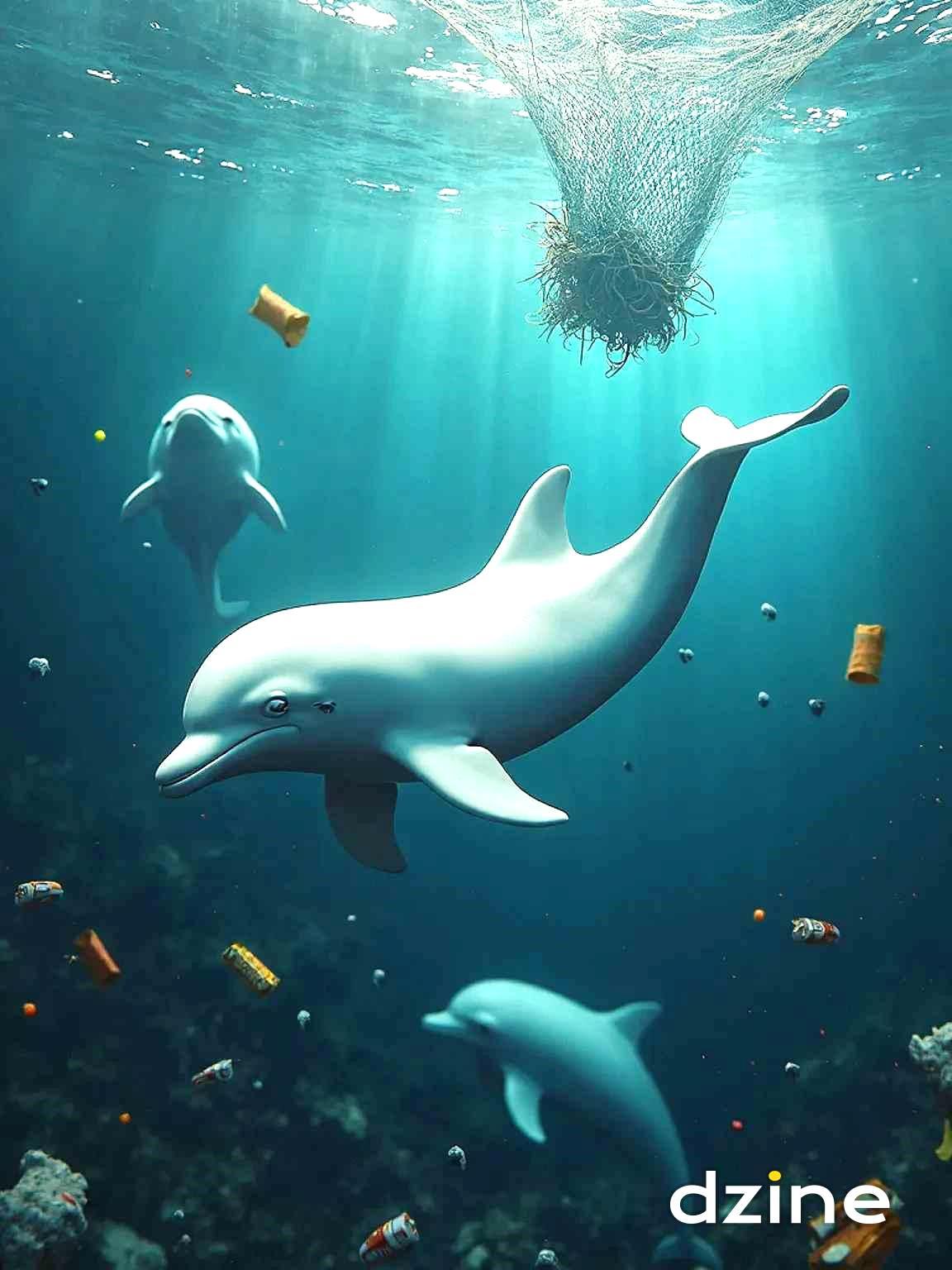 小白跳出水面,優雅地翻滾,急切地解釋:「海 洋的汙染讓我們無法生活,你們能幫我們嗎?」