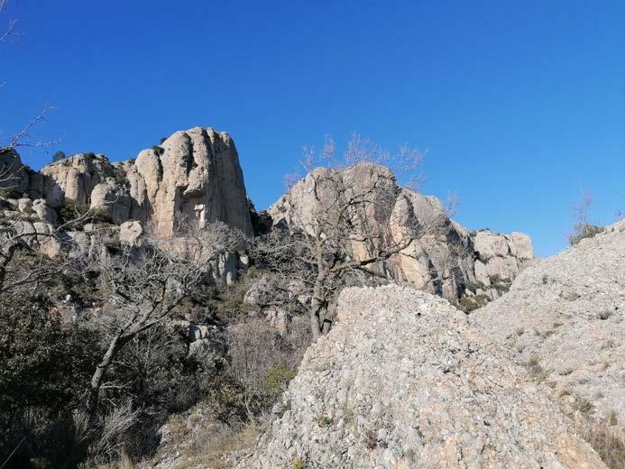 Aviat tornem al nostre itinerari. Seguim en ferma ascensió cap a la barraca de la Coma del Tec, sempre sota l’esguard de les retallades Esquerdes de Rojà. S’hi conserva una petita congesta, la única que trepitjarem. Ens enfilem per la coma i decantem cap al
