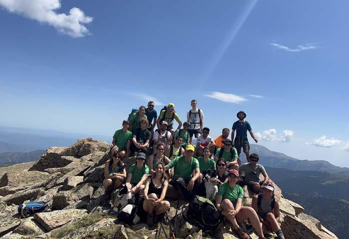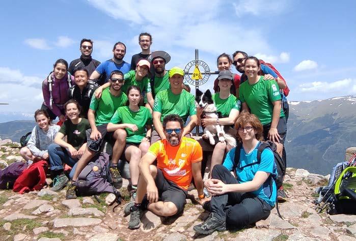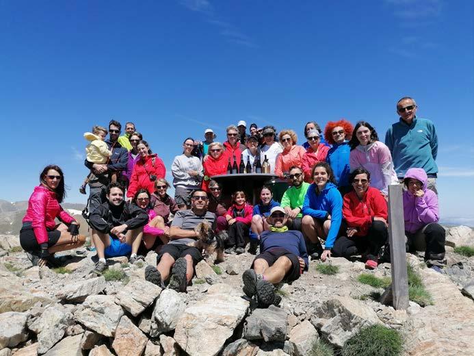 Al cim la colla creix fins a 35 excursionistes, que celebrem amb coca i xampany una nova edició de l’Aplec. El cant de l’himne a l’Isard clou, una vegada més, la festa.