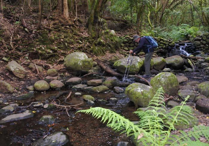 Sortim de El Contadero pel PN18 que seguirem tot el tram. Continuem dins el Parc de Garajonay i el seu majestuós bosc de laurisilves. El camí no té cap complicació, tot i que hem de travessar diversos cops el petit riu sense problemes. Arribem a la Ermita de Lourdes que té un detall curiós: hi ha una font que surt de dintre el tronc d'un arbre a un metre d'altura. L'ermita no té massa interès. Seguim fins a trobar diverses cases i una carretera que ens portarà a El Cedro. Aquí tenim un malentès amb els companys: com que anàvem bé de temps decidim anar a El Cedro i al salt d'aigua. Jo anava una mica avançat i vaig primer a El Cedro i llavors m'adono que no em segueixen. Baixo cap al salt i els trobo que ja tornen i em diuen que fins al mirador hi ha un gran desnivell de baixada i després es hauria de tornar a pujar . Veiem que no hi ha temps i ho deixem córrer. Volíem pujar pel túnel de El Cedro, però el track està errat.